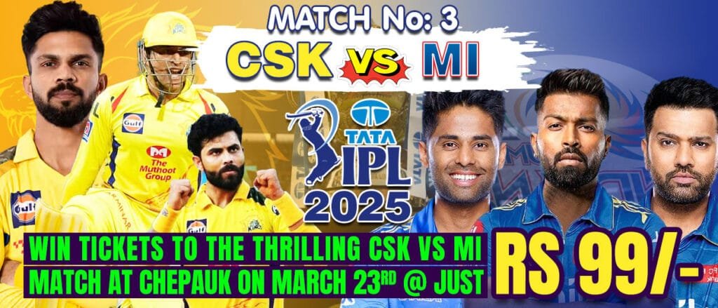 Don’t miss out on this rare opportunity to see the CSK vs MI match in person for a fraction of the cost.